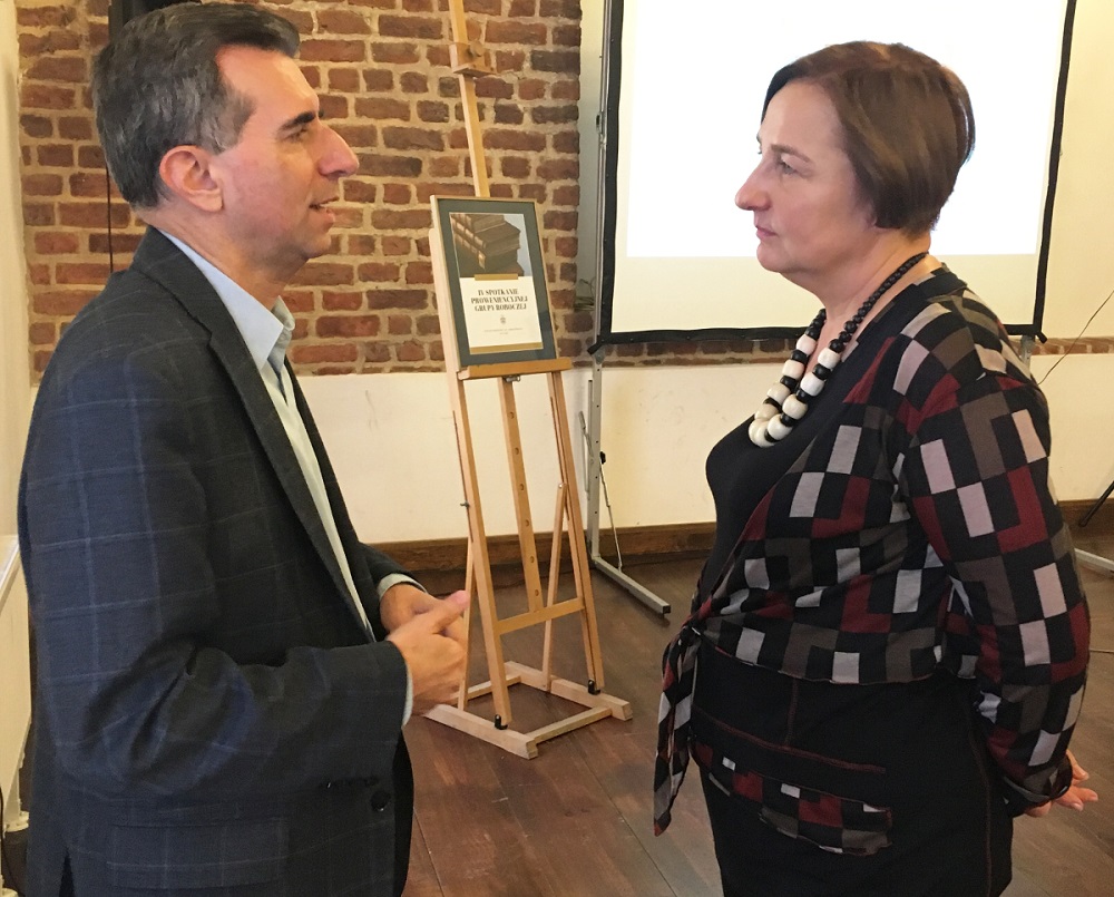 Do najbliższych zadań Grupy należy przygotowanie zestawienia katalogów bibliotek polskich zawierających indeksy proweniencji, Drugie zadanie dla zespołu to przygotowanie wykazu bibliotek polskich przechowujących stare druki, z określeniem wielkości kolekcji. Trzeci zakres pracy dotyczy sukcesywnego uzupełniania bibliografii. Po południu odbyła się promocja publikacji Książka dawna i jej właściciele (Early Printed Books and Their Owners), zbiór studiów pod redakcją Doroty Sidorowicz-Mulak i Agnieszki Franczyk-Cegły, t. 1-2, Wrocław: Wydawnictwo Ossolineum, 2017. W tej części uczestniczyli dyrektorzy Ossolineum dr Adolf Juzwenko i dr Mariusz Dworatschek, redaktorki D. Sidorowicz-Mulak i A. Franczyk-Cegła oraz recenzent prof. Jacek Soszyński. Gościem był też Piotr Piniński, prezes Fundacji Lanckorońskich, która dofinansowała wydanie książki. Dyrektor A. Juzwenko słowa podziękowania skierował do redaktorek książki, autorów, a także pracowników Wydawnictwa, którzy przygotowali cenną i ładną książkę. Dyrektor wspomniała także drugą pozycję opracowaną przez Dział Starych Druków Katalog druków XVI wieku z historycznej kolekcji Ossolineum, przygotowany pod redakcją dr D. Sidorowicz-Mulak. Prof. J. Soszyński w krótkim wystąpieniu podkreślił znaczenie wydawania materiałów pokonferencyjnych, a także prowadzenia badań proweniencyjnych. Pozwalają one poznać zasób starych druków w Polsce oraz są ważnym narzędziem badań nad kulturą naukową.