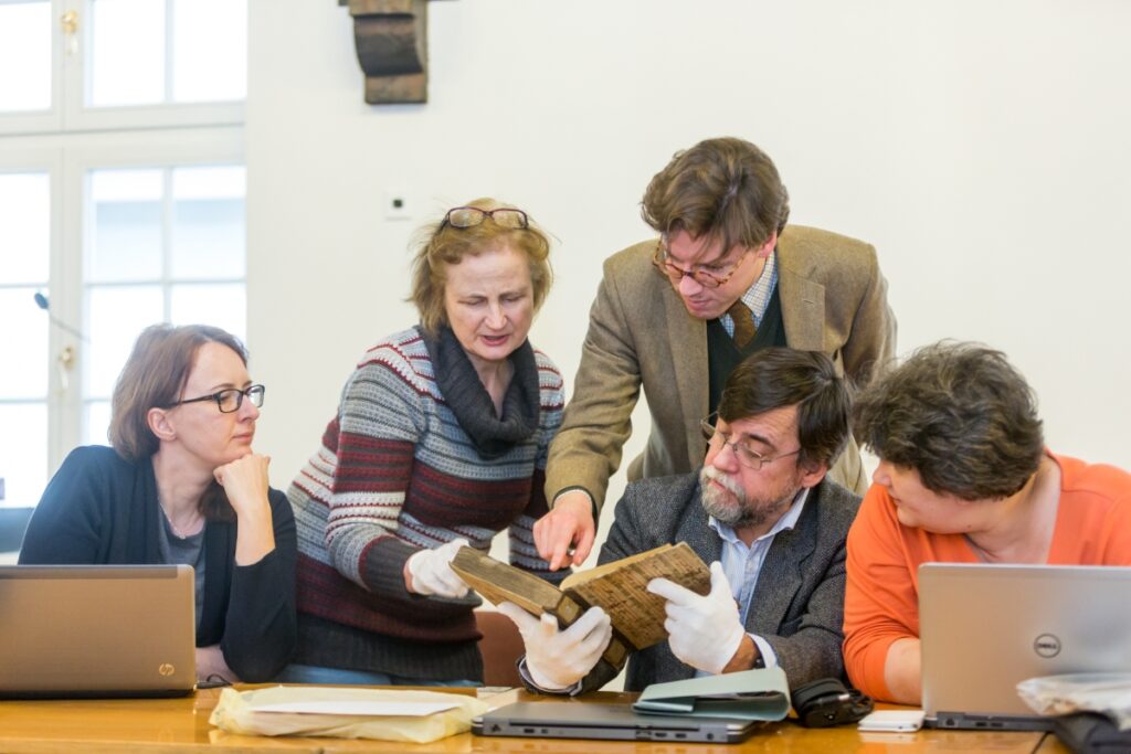 Dr Paulina Pludra-Żuk z Instytutu Historii Nauki PAN oraz dr Marta Czyżak z Biblioteki Uniwersyteckiej w Toruniu zaprezentowały efekty swych badań w wystąpieniu Badania proweniencyjne a fragmentologia na przykładzie fragmentów rękopisów średniowiecznych z terenu Prus Krzyżackich. Drobiazgowym analizom paleograficznym poddały one fragmenty pergaminów wykorzystanych przez introligatorów jako oprawy, wyklejki czy scyzury manuskryptów i druków. Autorki przedstawiły wykorzystanie różnych technik i metod stosowanych w celu dokładnego zbadania fragmentów dawnych dokumentów.
