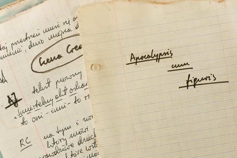 W 2008 roku brat Jerzego, prof. Kazimierz Grotowski, przekazał Zakładowi Narodowemu im. Ossolińskich część prywatnego archiwum artysty. Z tego archiwum prezentujemy nieznane fotografie i materiały z młodości, notatki dotyczące pierwszych prac reżyserskich i teoretycznych, lektur i podróży, brulion Apocaypsis cum figuris z uwagami reżyserskimi, teksty wystąpień i artykułów. Dzięki zbiorom Instytutu im. J. Grotowskiego wystawę wzbogaciły projekty scenografii, fotografie, scenariusze przedstawień, notatki organizacyjne i inne materiały dotyczące Teatru 13 Rzędów, później Laboratorium.